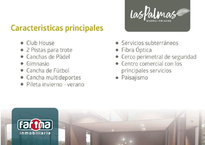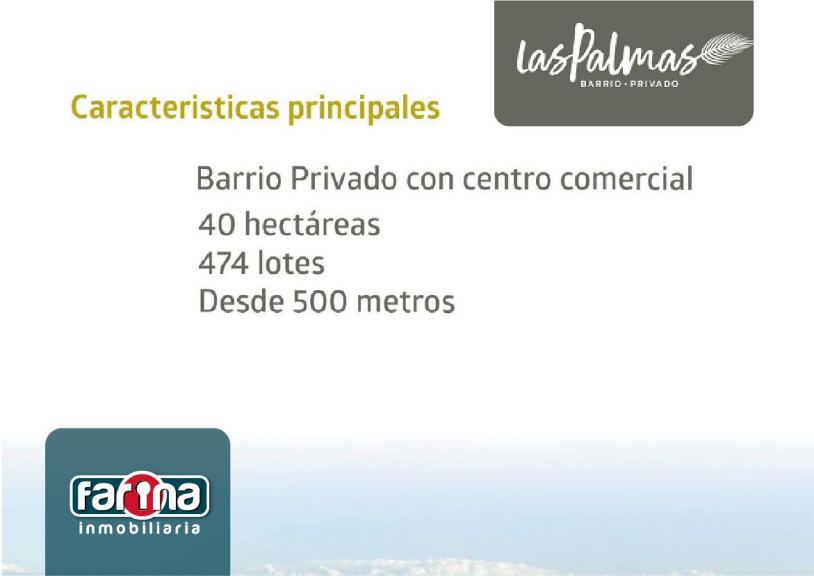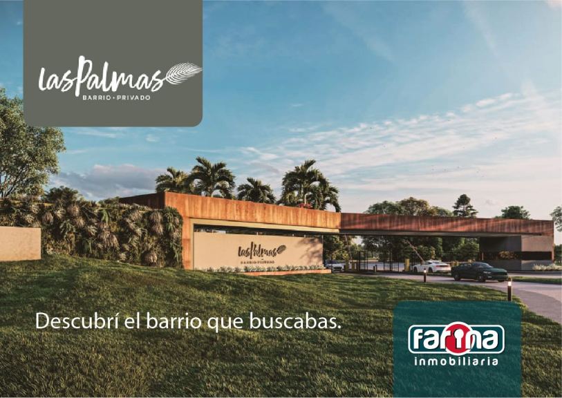 FARINA INMOBILIARIA vende LOTE en Barrio Privado Las Palmas, siendo éste, el más grande y con mayor infraestructura de la zona.