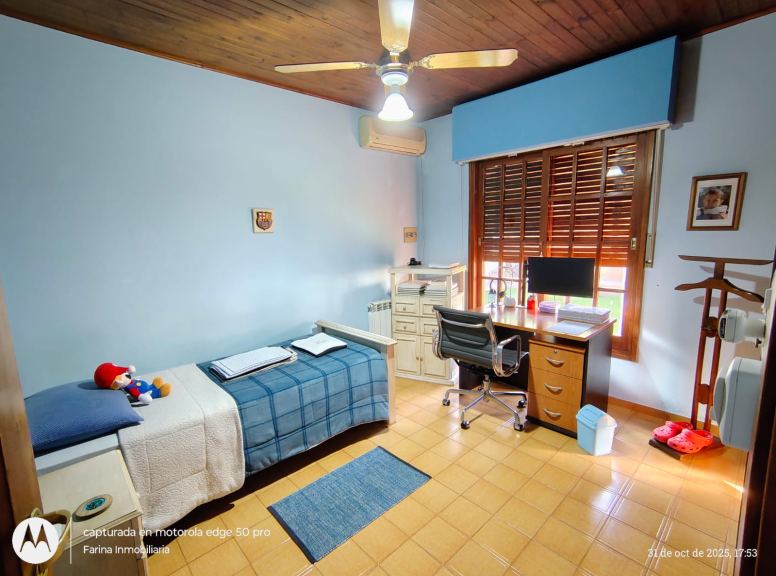 En la planta baja se emplazan living comedor principal, comedor de diario, un segundo living (más intimo), dos habitaciones, baño con antebaño, sala de estudio, lavadero, baño de servicio, cochera cubierta y galería con vistas al jardín. Con ingreso independiente de la vivienda, se desarrolla un imponente quincho con churrasquera, cocina y baño, con hermosa vista hacia la piscina, jardín y plaza de juegos.