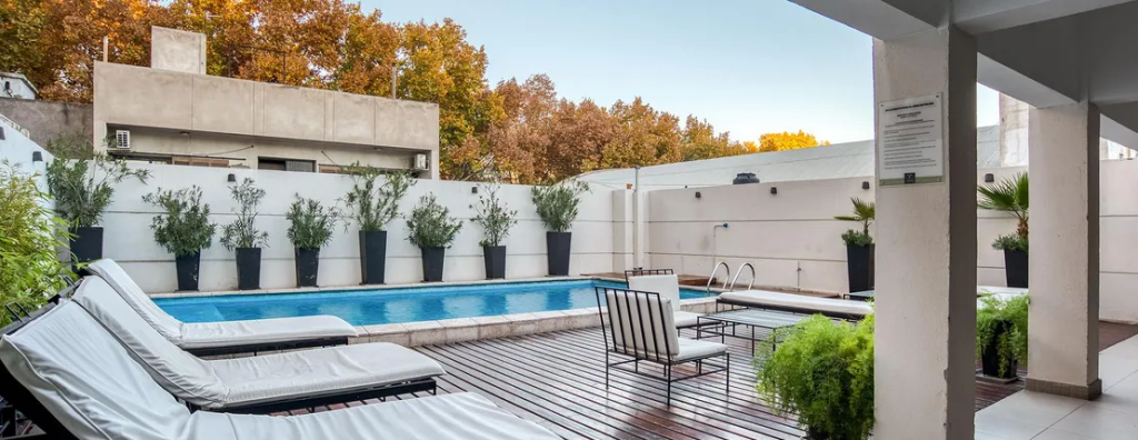 El departamento cuenta con una superficie total de 57m2, distribuidos en un amplio estar-comedor con salida a un patio de uso exclusivo de 12m2, un dormitorio con cama doble king size, un baño completo con hidromasaje, y una cocina equipada con anafe eléctrico.